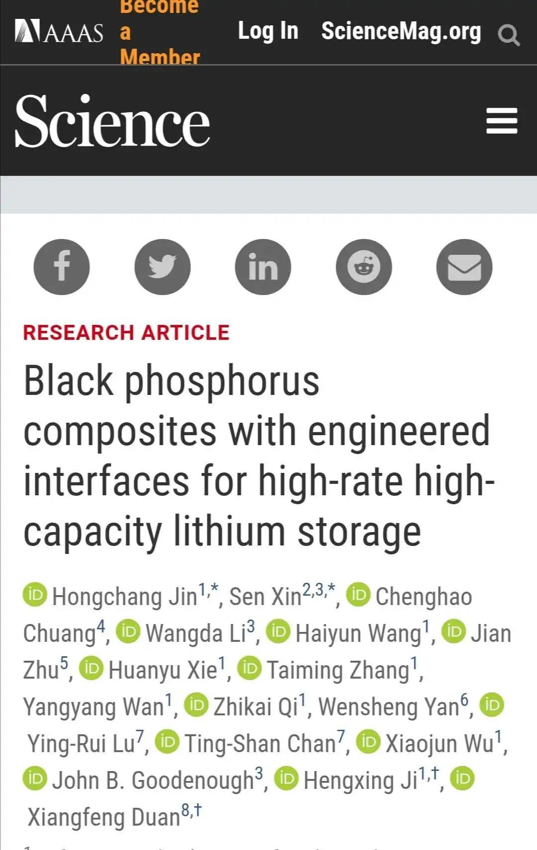 日前,中国科学技术大学季恒星教授团队在国际顶尖杂志《科学》上刊发了一项科研成果——他们在新型锂离子电池电极材料研究方面取得重大突破:全新设计的黑磷复合材料有可能制备出兼具高容量、快速充电且长寿命三大优点的锂离子电池。