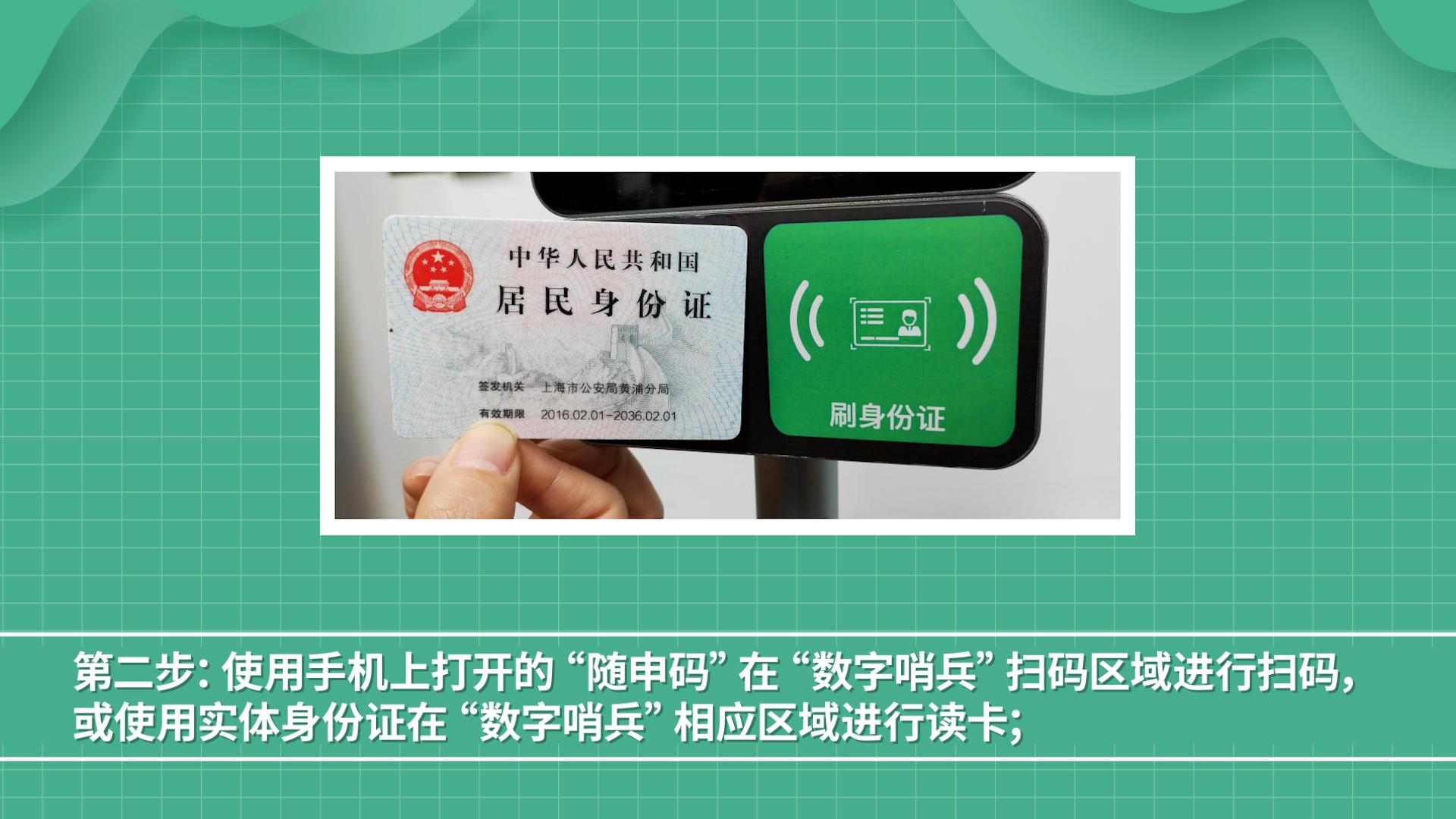 第二步:使用手机上打开的“随申码”在“数字哨兵”扫码区域进行扫码,或使用实体身份证在“数字哨兵”相应区域进行读卡;