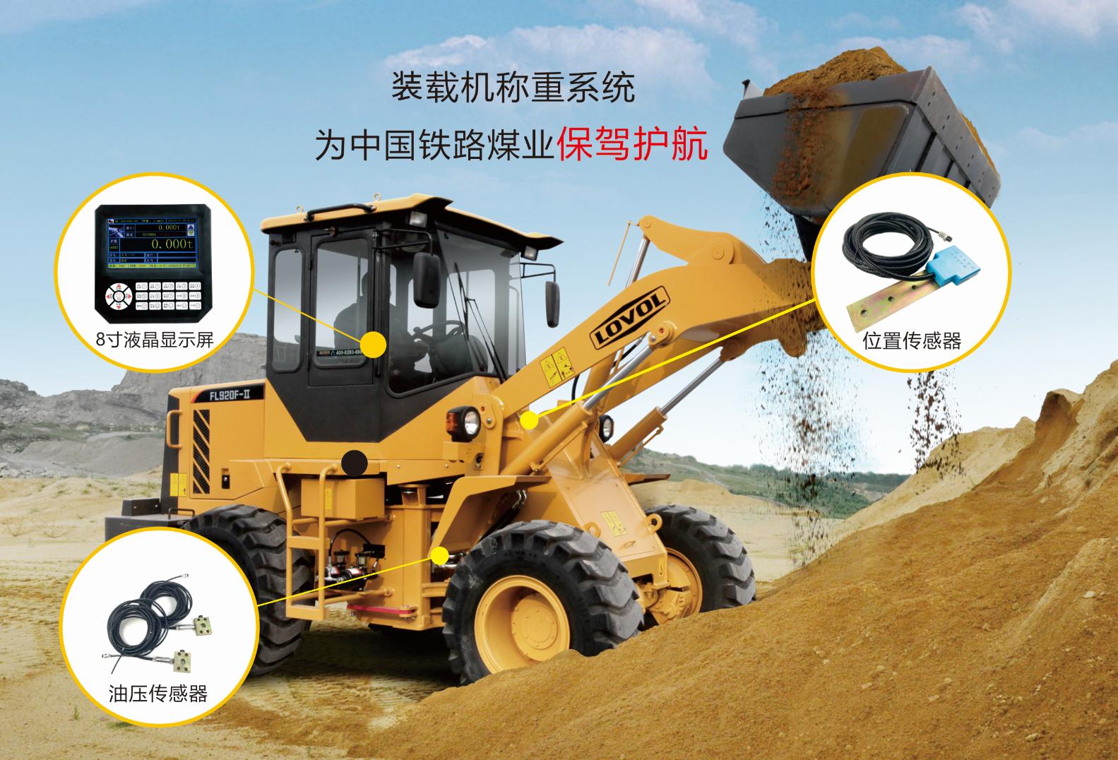 装载机秤是一种装载机称重设备,与装载机的机械控制部分集成为一体,在装载机行进中实现称重。它通过一个接近开关对预先确定的称量位置的监测,将液压转换为铲斗内载荷的重量而实现称重。