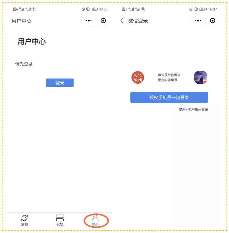 点击底部“我的”开始登录, 授权微信绑定手机号一键登录,即可阅读。