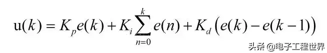 实:你经常看到的公式“u(t)=kp[e(t)+1/TI∫e(t)dt+TD*de(t)/dt]”中的u(t)。