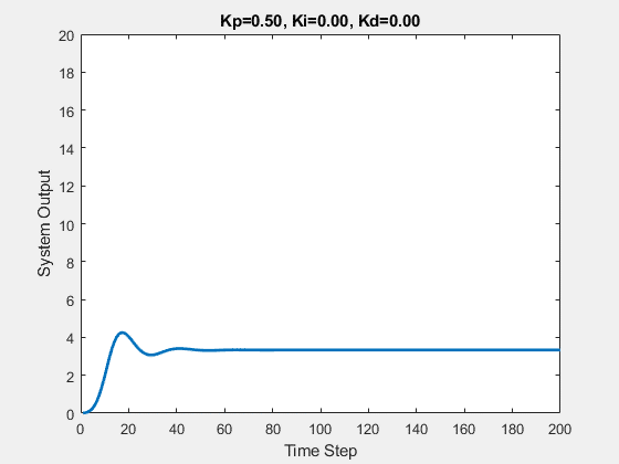 假设kp取0.5, 那么t=1时(表示第1次加水,也就是第一次对系统施加控制),那么u=0.5*0.8=0.4,所以这一次加入的水量会使水位在0.2的基础上上升0.4,达到0.6.。