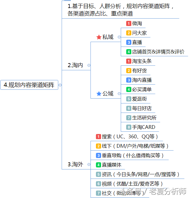 4.规划内容营销渠道矩阵包含淘内和淘外i及公域和私域
