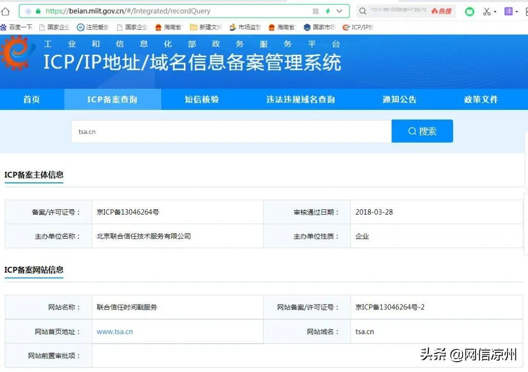 首先我们打开工信部官网(https://beian.miit.gov.cn/)查询https://www.tsa.cn/网站备案信息,确定其主体(如图7所示);