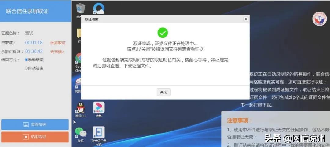 步骤4. 点击【结束取证】,系统会提示用户证据文件正在处理,点击关闭回到证据列表界面,等待证据处理(如图11所示);