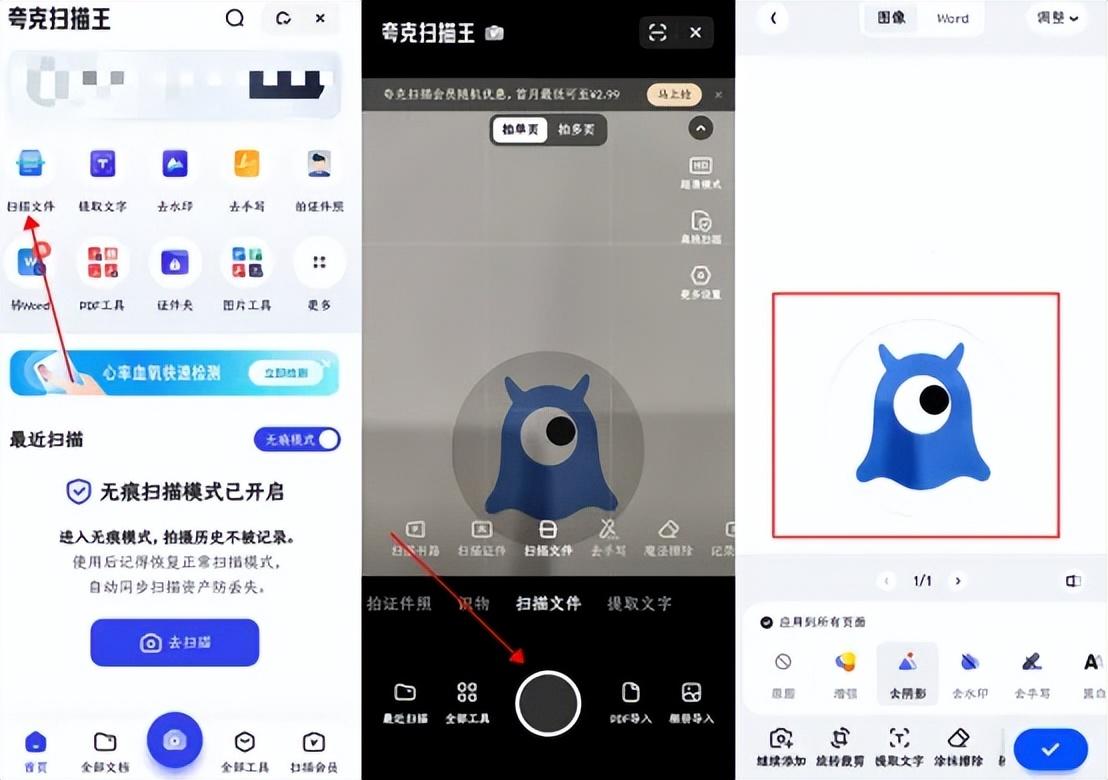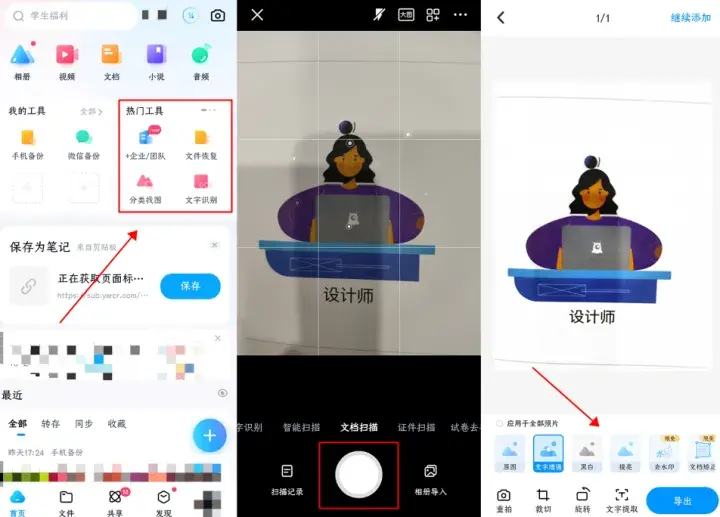 ①在首页的“热门工具”里找到“文档扫描”功能②框选好识别的区域,点击拍摄③调整尺寸和滤镜,就完成扫描了