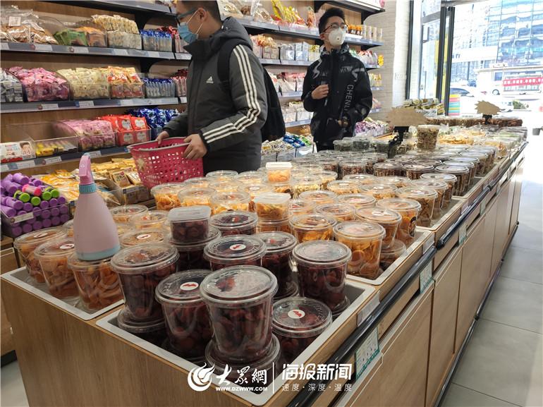 以干果为主的各类休闲食品是这家店的主打产品,从2005年创立品牌以来,小高栗子已在德州拥有14家店面。记者看到,店门口提前竖起了告示牌,标注着“进门请测量体温”“排队请间隔1.5米”,相较疫情发生前店内常出现的“人贴人”排队景象,如今舒朗不少,但每个顾客几乎都是满载而归。