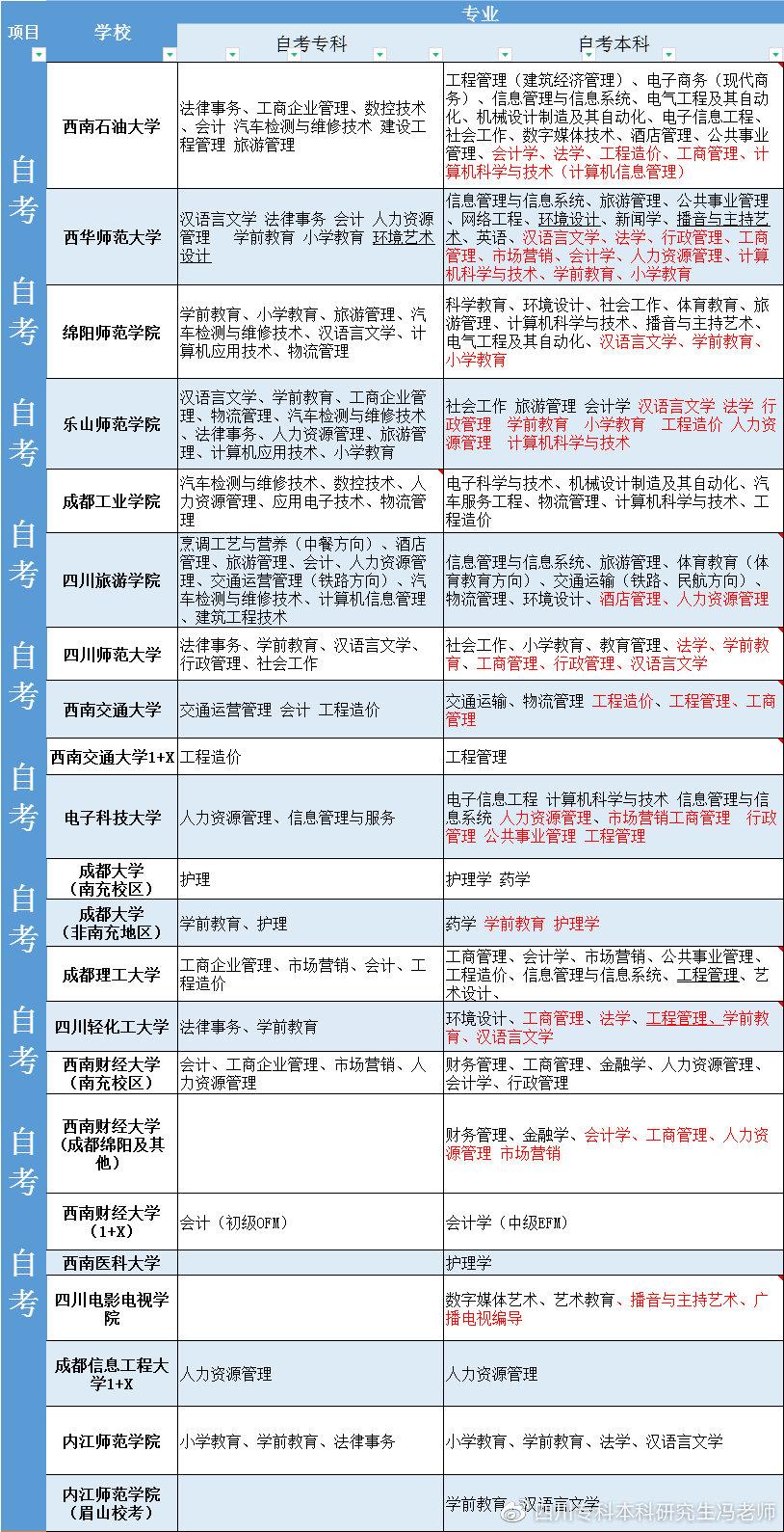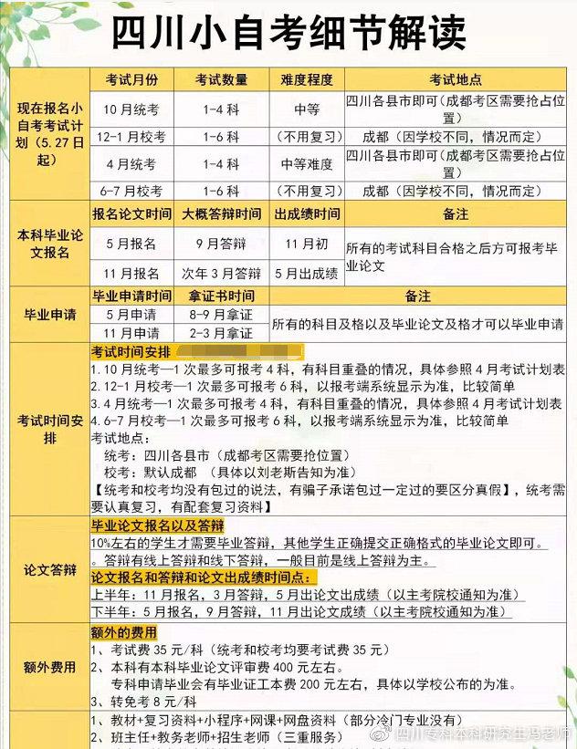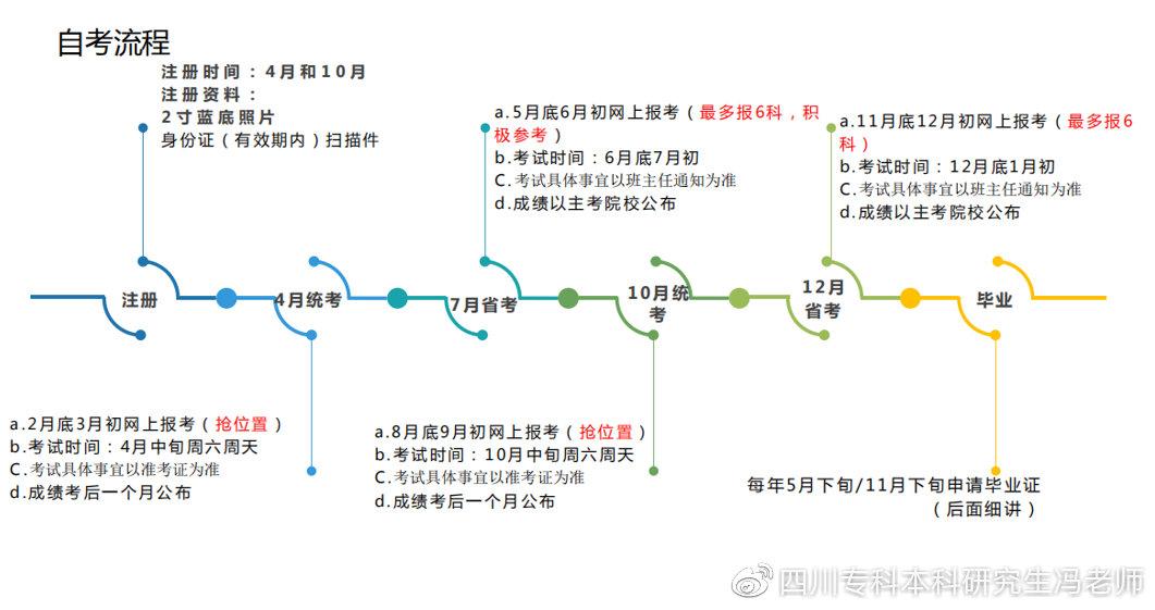 1.统考(国考): 每年4月10月两次,每次可报考1-4科,考点四川任意地区,考前练习刷题为主 。