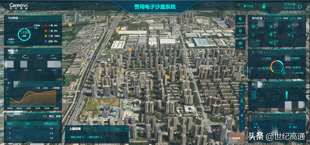 在此背景下,世纪高通面向公安指挥中心、治安、反恐等各业务单位,突破传统地图局限,以二三维一体化数字孪生为基座,以数字化警务业务为核心,以服务警务实战为原则,正式推出警用电子沙盘系统,旨在提升公安机关在常态模式、敏感节点、突发紧急模式下的预防及快速处置能力。