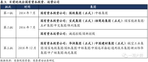 国企改革是我国历次经济变革中承上启下的关键,在历次大变局中率先释放改革红利。 国企改革具有明显的“逆周期”特性,往往发生在上一轮改革红利释放尾声,而新一轮改革方兴未艾的大变革时期。拉长历史周期看,市场化经济之下历次国企改革都同时肩负两大使命,其一为化解上一轮周期尾声所带来的过剩库存、产能,过高杠杆等经济风险,其二为扮演下一轮改革的“先锋队”,作为下一阶段我国经济体制改革的重要抓手,落实国家发展战略。1993年至今,国企改革已历经三大阶段:1)第一阶段伊始,国企是所有制改革的焦点,而98年金融危机背景下国企又成为化解企业过度扩张、过剩库存的关键。2)第二阶段,加入WTO后我国市场化改革加速,国企向上游垄断性行业集中,充分竞争的下游行业交给外资民企。本轮改革尾声,国企则背负着庞大过剩上游产能去化,转变增长模式的压力。3)第三阶段,产业创新升级成为我国经济的核心目标,国有企业现代企业制度建立与国有资本运行的效率亟需进一步提升。2018年后,尽管在供给侧改革后我国内部环境平稳,但逆全球化格局下我国科技突破与产业安全却面临新的风险与挑战。亟需新一轮国企改革释放红利,探寻破局之道。