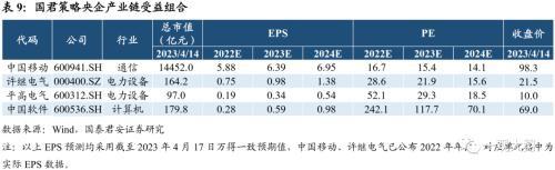 ▶ 推荐国君策略央企现代产业金股组合: 1)央企产业升级:中国电信/科大讯飞/中国汽研/中复神鹰等14只个股;2)央企产业安全:国电电力/中材国际/荃银高科/华润三九等9只个股。受益:中国移动等。