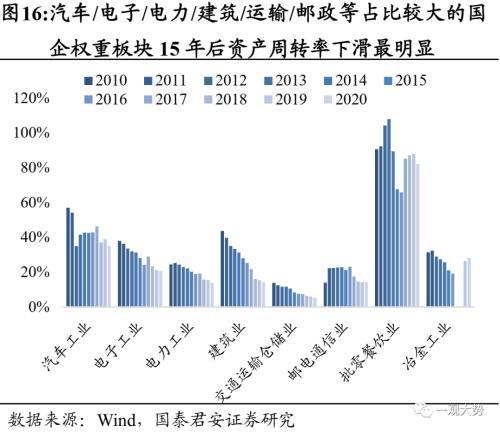 3.1. 钱从哪里来?国企提质增效、国资加大支持资产周转率下降是近十年拖累国有企业ROE的主要原因,高端科技/公用/基建板块周转率下降最多。 国企在过去被低估的重要原因在于盈利能力低下,对比2017年以来央企与民企500强的ROE,可以发行央企ROE在6%附近,而民企头部公司则高达约13%。拆解来看,国有企业ROE下降最核心的拖累是资产周转率下降,15年前,流动资产周转与固定资产周转均拖累国企ROE下降,而15年后固定资产周转止跌,流动资产周转继续下降。这即是市场过去一直担忧的国有企业经营效率较低的问题。尽管财政部披露口径难以继续拆解,但从央企经营数据看,应收账款周转率的下降或是重要因素。而从结构上看,资产周转率下滑最明显的权重板块包括高端制造类,如电子、汽车工业。公用类,如邮政、交运、电力。以及基建类,如建筑业。而经过供给侧改革后的上游资源品央企,以及下游完全竞争领域的批零餐饮央企的资产周转率则呈现上行的趋势,经营效率改善。我们认为,高端制造央企资产周转率下降主要受到行业技术快速迭代冲击,市场萎缩、存货高企、产能闲置,如国企燃油车企业;公用领域主要因为考核标准主要为社会民生保障能力而非盈利能力,企业长期以来向社会让利;基建领域主要受到逆周期调节影响投向大型长久期基建项目,项目回款慢,因此周转效率也难以提升。