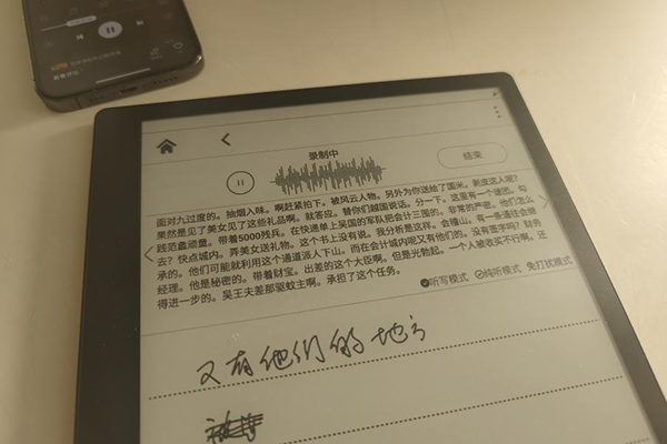 需要点赞的是,当你书写完成后,文字内容还可通过本地+在线双引擎识别,即时转换TXT文本,通过二维码发送到手机、微信、邮件上,方便对文字后续编辑和整理。同时,汉王手写电纸本1001还具备AI语音记事本功能,可以说当这项功能的加入,就让电纸本变成了一个带有写字板的录音笔,你可以边录音、边转写、边手写,可谓效率翻倍。