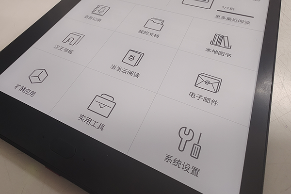 再来说一下应用能力,汉王1001内置应用市场看似只是将平板电脑里的应用,平移到电纸书中,可实际使用时,诸如阅读、办公、新闻、邮件等工具栏APP应用反而能让你得到一种拟物化的体验感。