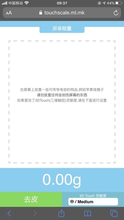 苹果电子秤 怎么使用?使用方法非常简单,只需要通过Safari浏览器前往网页,选择3DTouch的力度(Sensitivity),再在屏幕上放置需要称重的物体,即可得到重量。需要注意的是3DT...