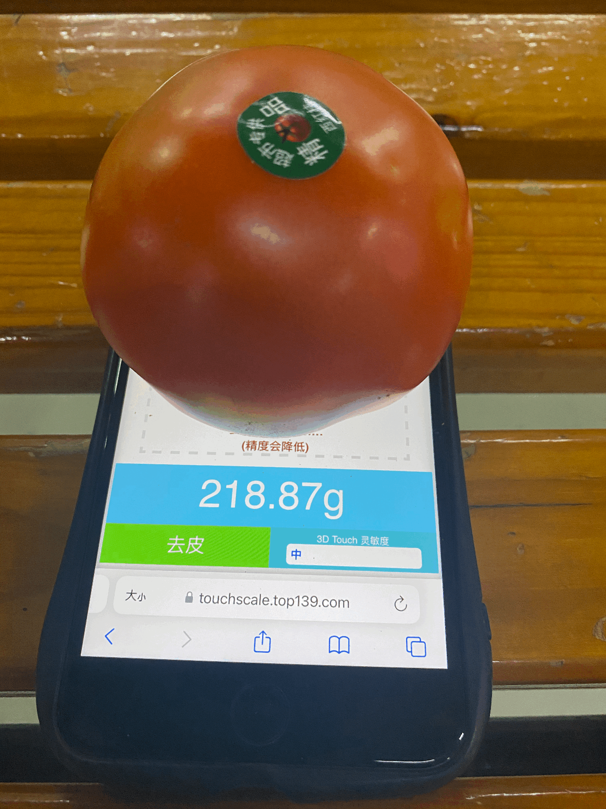同一个番茄在手机上称重结果为218.87克。见习记者樊友寒 摄