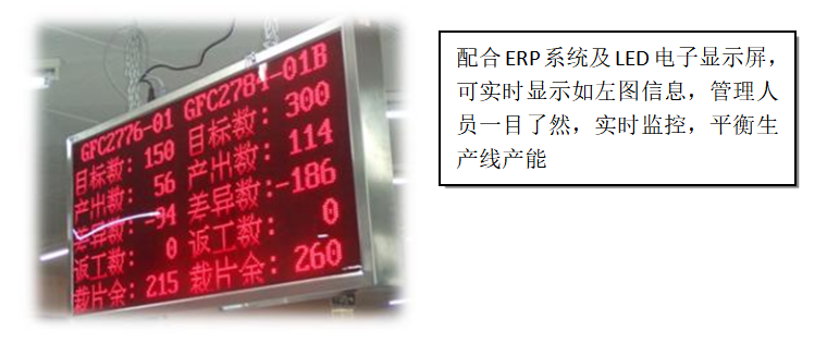 (2) 信息实时化:车间现场数据实时体现,方便管理者对车间进行效率改善和安排调度,即时监测生产瓶颈,自动产生各种管理决策报表,如车间目标达成率、制单生产进度、车间平衡报情况、返工率统计等。