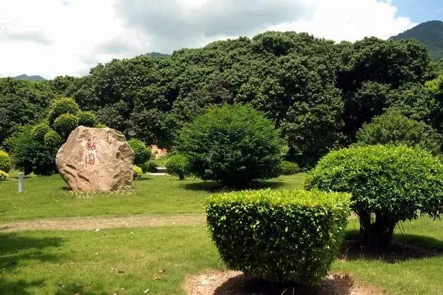 励园的草地上、石头旁