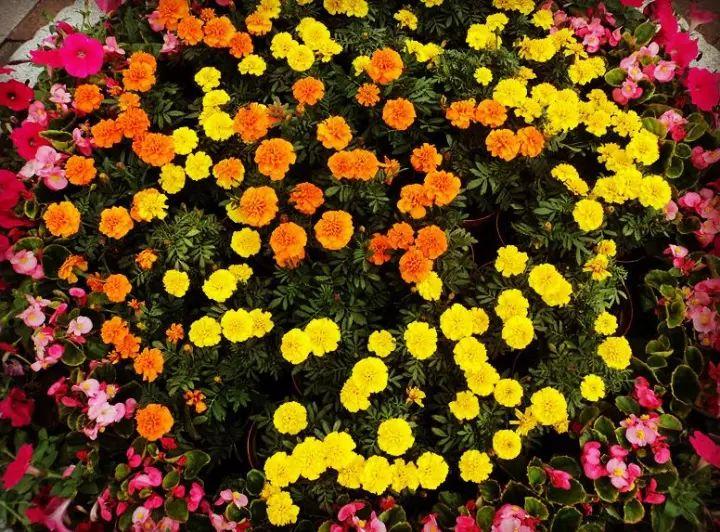 粉橘红黄的盛开,温暖了冰冷的石坛