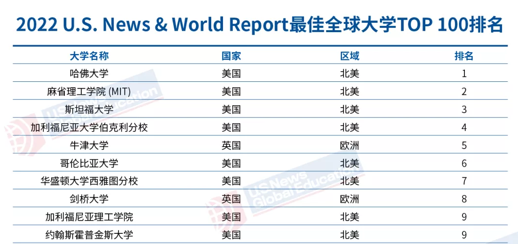 最近,《2022年度U.S. News世界大学排名》出炉,哈佛大学、麻省理工学院、斯坦福大学稳坐前三。