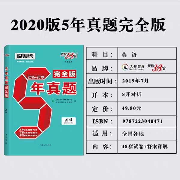 ①《天利38套5年真题完全版》