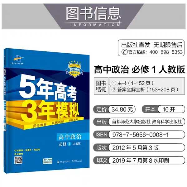 时政一直是高考政治中非常重要的一部分,而有些问题一直是长效热点。书里面的内容就是先分单元解读时政热点,然后联系高中政治的书本内容,讲解时政在书本中的理论支撑,最后是一些高考时政练习题。这两本我都买了,但我认为2018的那个版本是必买的,因为那本时政讲解的内容更多更细,还有一部分长效热点。看这本书的时候要边看边勾画,积累时政术语,并将其运用到主观题答题中。这个书大概每年3-4月的时候会出新版,所以2020的考生可以先买2018版本的先看先积累,到新版出来时再看新版。
