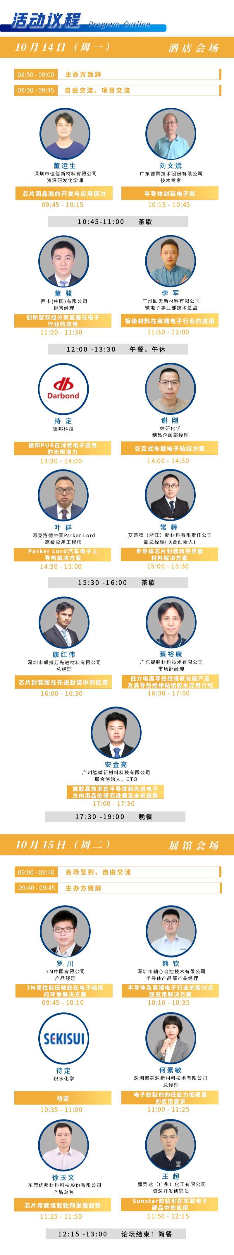 为推进胶企精准把脉中国半导体及高端电子用胶市场与技术最新发展趋势和机遇,助推中国高端电子用胶产业快速高质发展,粘接资讯、新材料产业联盟、慕尼黑华南电子生产设备展等单位特联合携手于10月14-15日在深圳举办“2024(第二届)半导体及高端电子用胶粘材料创新论坛暨2024先进电子点胶及胶粘剂技术论坛” 。