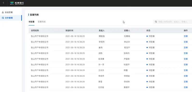银行经营管理活动中存在海量的文档签署,不管是银行内部文件签署,还是银行与外部机构(供应商/合作商)文档签署,都面临效率低、风险大、成本高、管理不便等难题。