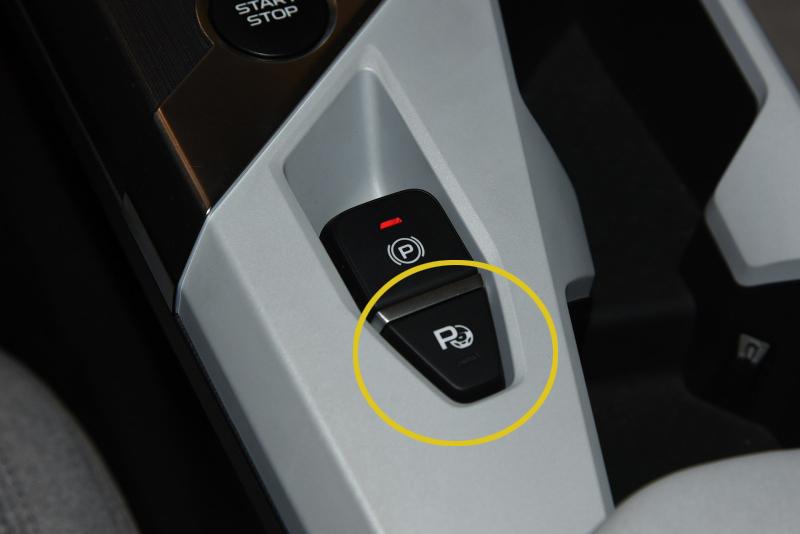 第四步,停车之后,中控屏上会出现踩住刹车并按自动泊车按键的提示,因此要在踩住刹车的基础上,按一下自动泊车按键,之后按提示松开刹车,车辆就会进入到预设的泊车工作状态。