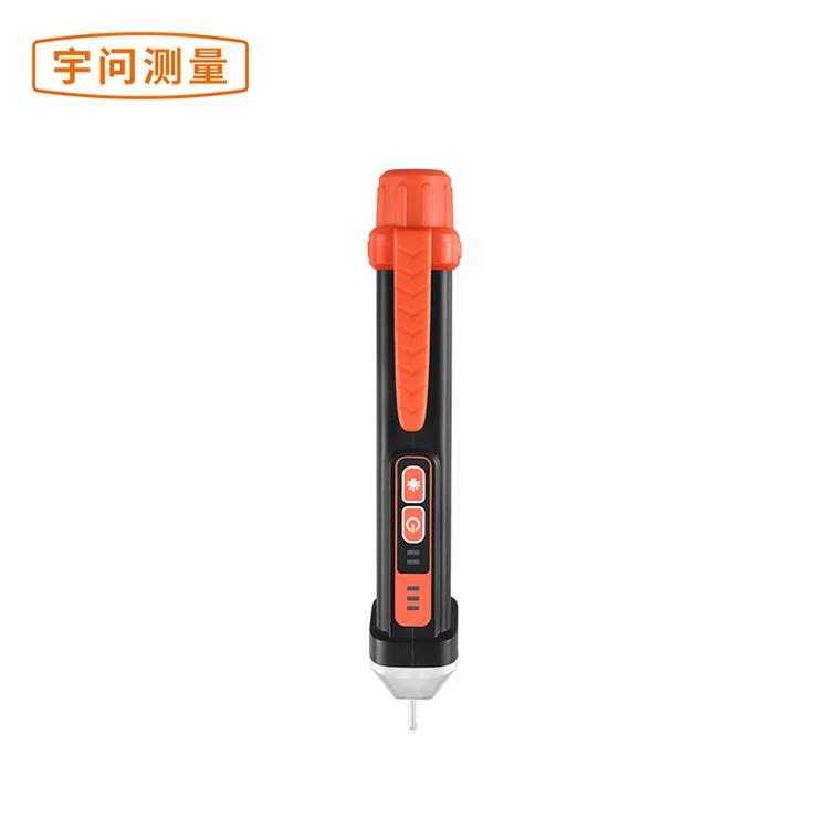感应测电笔属于非接触式的测电笔,例如宇问测量的这款YW-322,它自带手电光源,交流电压12-1000V,频率50Hz-60Hz,测电笔感应到交流电压时会有不断的连续声音和LED灯闪烁提示,不仅可以检测裸露电线,还可以探测埋在瓷砖下的电线是否有电,可以自动识别零线和火线。