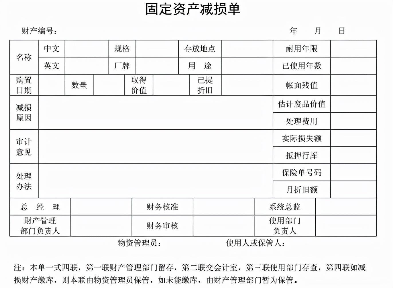 【基本报表】之固定资产减损单