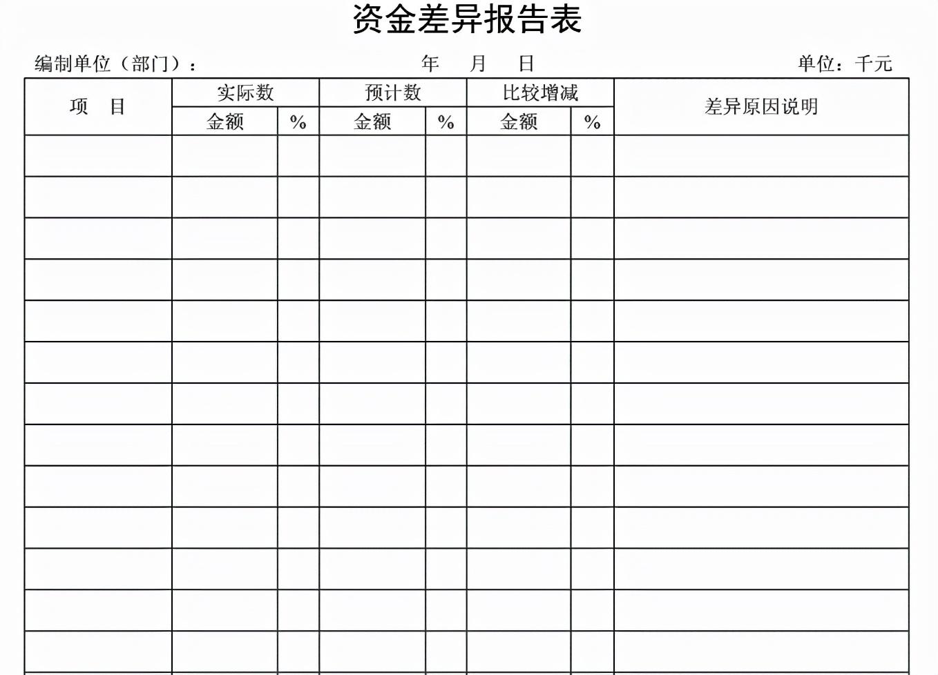 【基本报表】之资金差异报告表