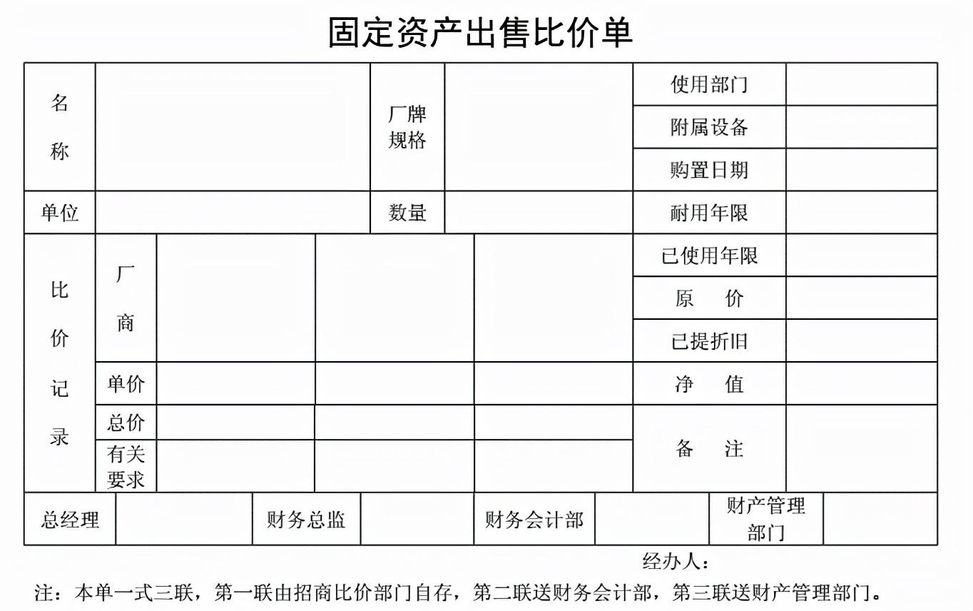 【基本报表】之固定资产出售比价单