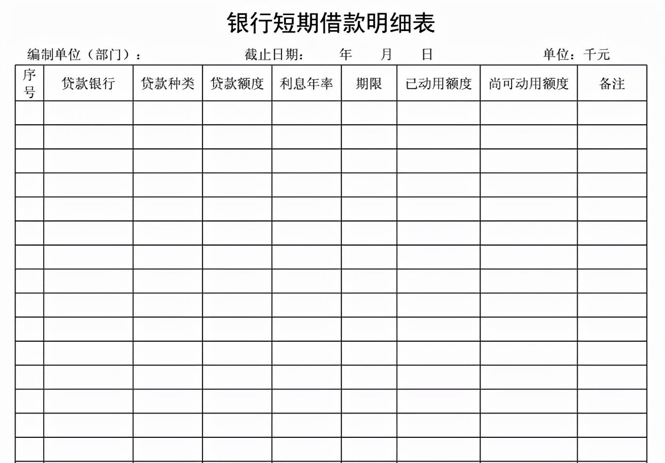【基本报表】之银行短期借款明细表