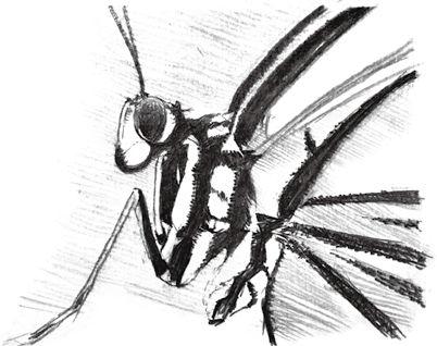 螳螂的秘密武器有两个。一个是与蜻蜓一样的复眼,螳螂的复眼也有几千只小眼睛,每只小眼睛以1°~3°的轴心角呈凸面排列,看起来像一个蜂窝状的半球形。当小虫在螳螂眼前飞过时,小虫的影像就在其复眼里成像,并迅速传递到大脑。虽然每一只小眼只能看到一个个单镜头,就像电影胶片的一个个单镜头一样,但每只小眼可轮流感受运动的物体,这样它的大脑里就可以感觉到景物的运动了。