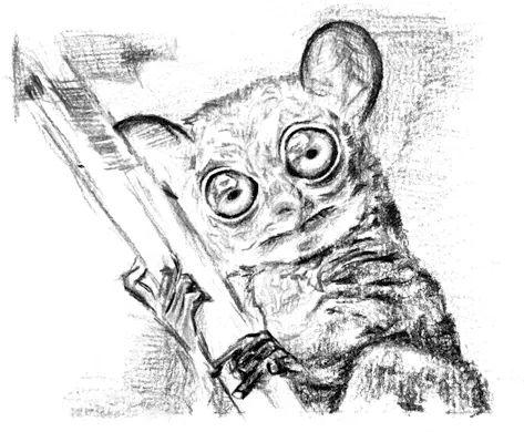 濒临灭绝的眼镜猴是目前世界上已发现的最小的灵长类动物,身长只有10~12 厘米,大概只有成人的手掌大。眼镜猴有一双圆圆的凸出的大眼睛,直径超过1 厘米。如果按照身体的比例来计算的话,那么它的眼睛是灵长类动物中最大的,每只眼睛重达3 克,比它的大脑还重,这和它小小的身体很不对称。不仅如此,在灵长类动物中,眼镜猴也是相对耳朵最大、趾骨最长的动物。