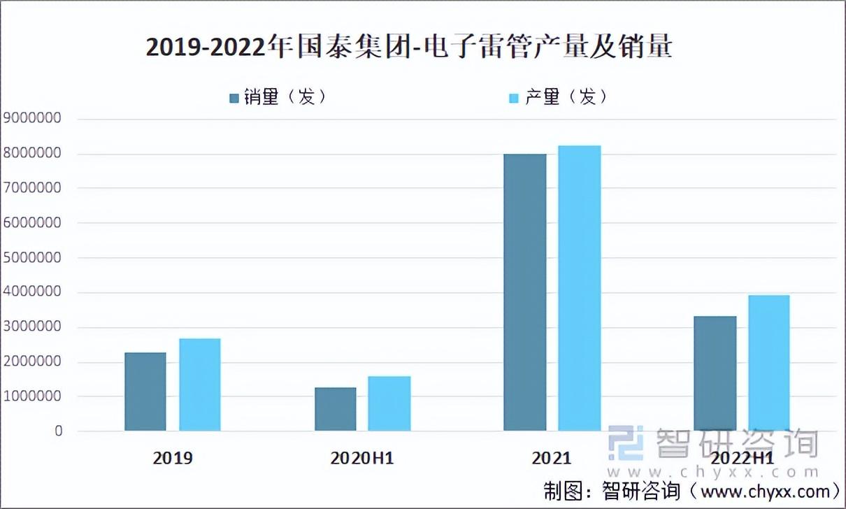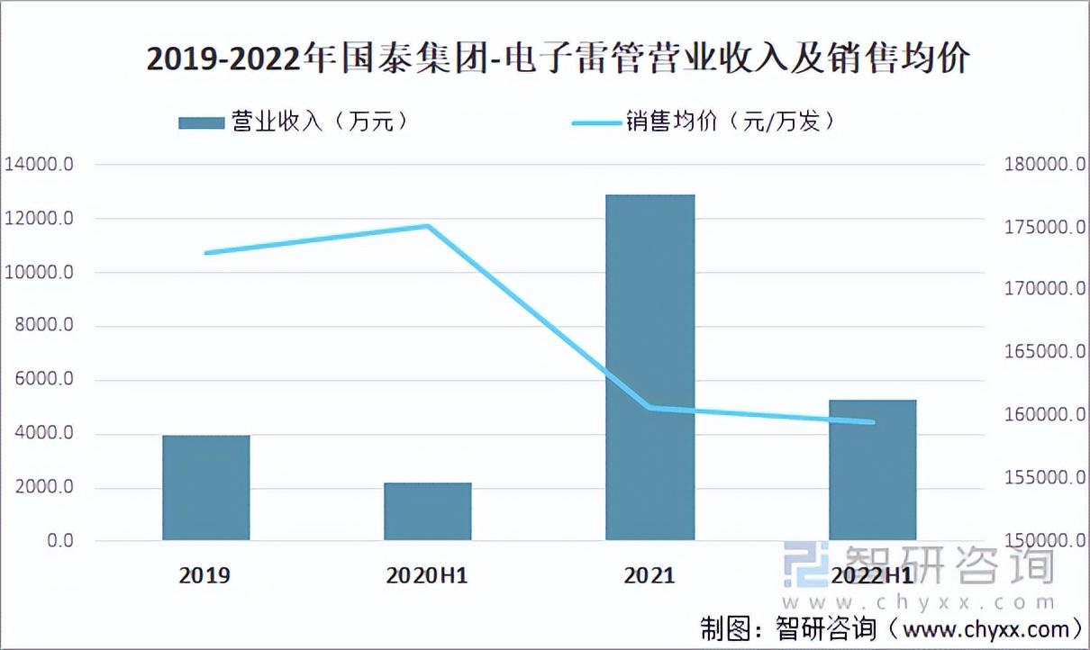 据公司年报数据,2022上半年国泰集团-电子雷管营业收入为5308.73万元;电子雷管销售均价为159461.01元/万发。