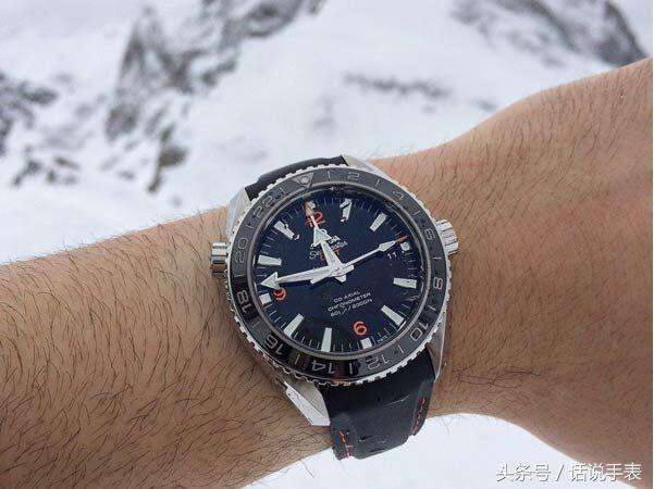 欧米茄海马系列海洋宇宙手表,貌似保守的黑色表盘外观,加上橙色数字带着一丝运动气息,而此款的胶带显得更加动感。无论上雪山、下深海,都不怕有时差。