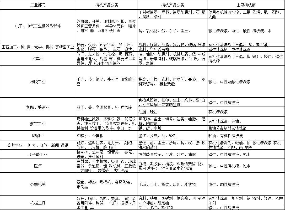 关于超声波清洗方面的知识,大家都知道哪些呢?仙子超声波清洗不管是再家用还是在工业上应用的越来越广泛,下表是关于超声波清洗的一些主要应用场合: