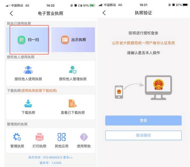 2.登录系统。用电子营业执照应用程序中的“扫一扫”,即可扫码登录相关系统。