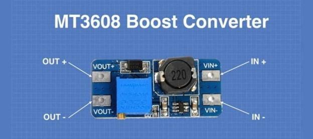 MT3608仅具有四个标记清楚的引脚,非常易于使用。由于它能够输出高达28伏的电压,因此在将设备连接到电路之前,使用微调电位器设置输出电压是一个好主意。