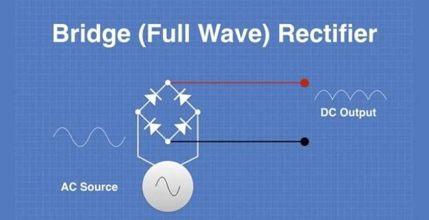 输出电压更大。它将是交流输入电压乘以1.414。使用交流循环的正向和负向部分,这会更有效率。您可以使用四个单独的二极管构建该电路,也可以购买预接线的桥式整流器。