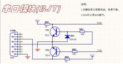 三极管串口通信:本电路是用三极管搭的,电路简单,成本低,但是问题,一般在低波特率下是非常好的。