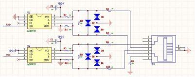 全双工RS485电路(带保护功能):带有保护功能,全双工4线通信模式,适合远距离通信用。