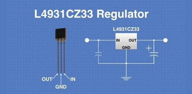 L4931CZ33-AP的连接与78XX系列的连接非常相似。我提到的2.2uf电容器用于输出,也可以在输入上放置一个可选的陶瓷电容器。