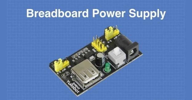 面包板电源是一个常见的组件,专门设计用于为无焊面包板供电。这些便宜的单元带有两个线性稳压器,可从9至15伏的直流输入提供稳定的5或3.3伏。它们旨在卡入标准无焊面包板的电源轨中。该设备还具有2.1毫米同轴电源输入,电源LED指示灯,USB电源输出和开关。