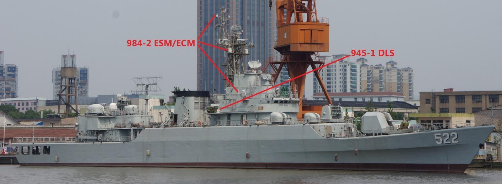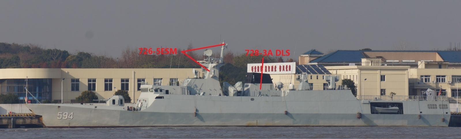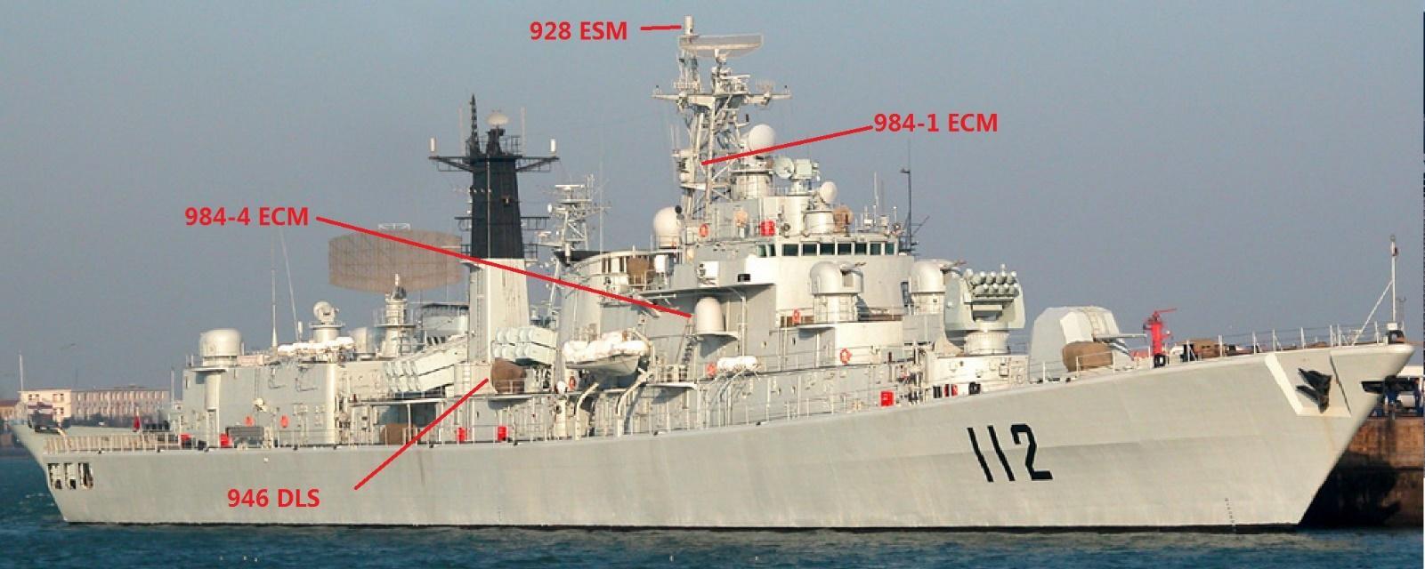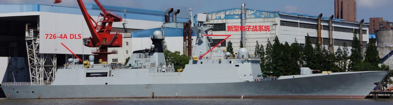 值得注意的是,在最近几艘新下水的054A护卫舰上,原来751系列电子战系统被一种新型电子战系统所取代,最明显的特征是在在ESM系统分上增加了一组阵列天线,通常这种做法是为了增加某些频段信号的截获,同时原来的ECM系统也被一种相控阵体制的有源干扰机所取代。这种变化也体现在最新的053H3,564/566号护卫舰的现代化改装中。