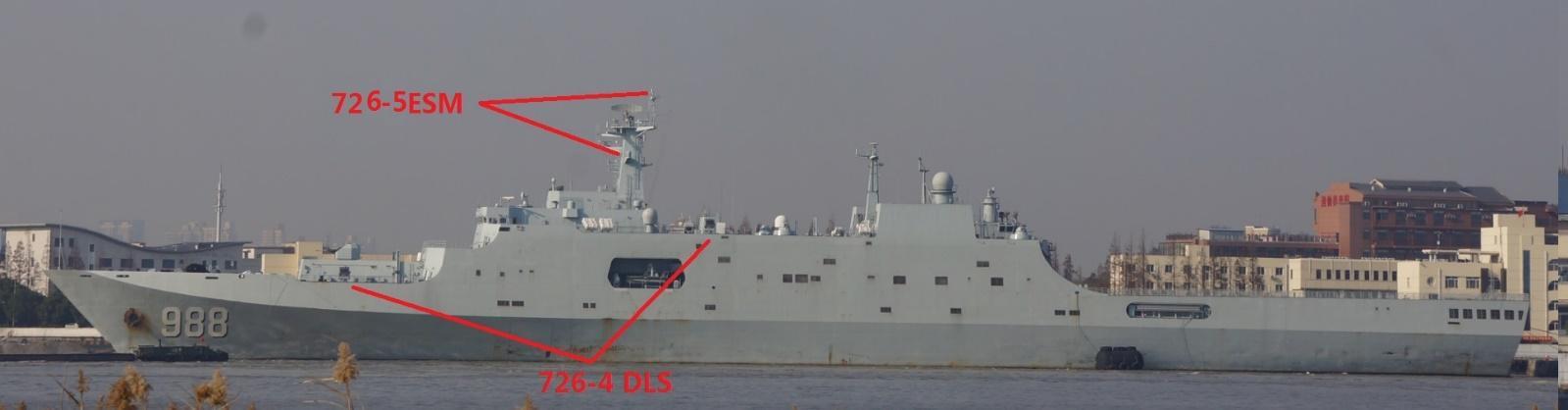 728系列电子战系统:由728雷达侦查与支援系统,和不同型号的无源干扰发射器组成。该电子战系统的特点是具备完善的雷达告警测频测向功能,但不具备有源干扰能力,主要应用在早期型号的071登陆舰(如999号井冈山),它搭配的是726-4多功能干扰发射器。