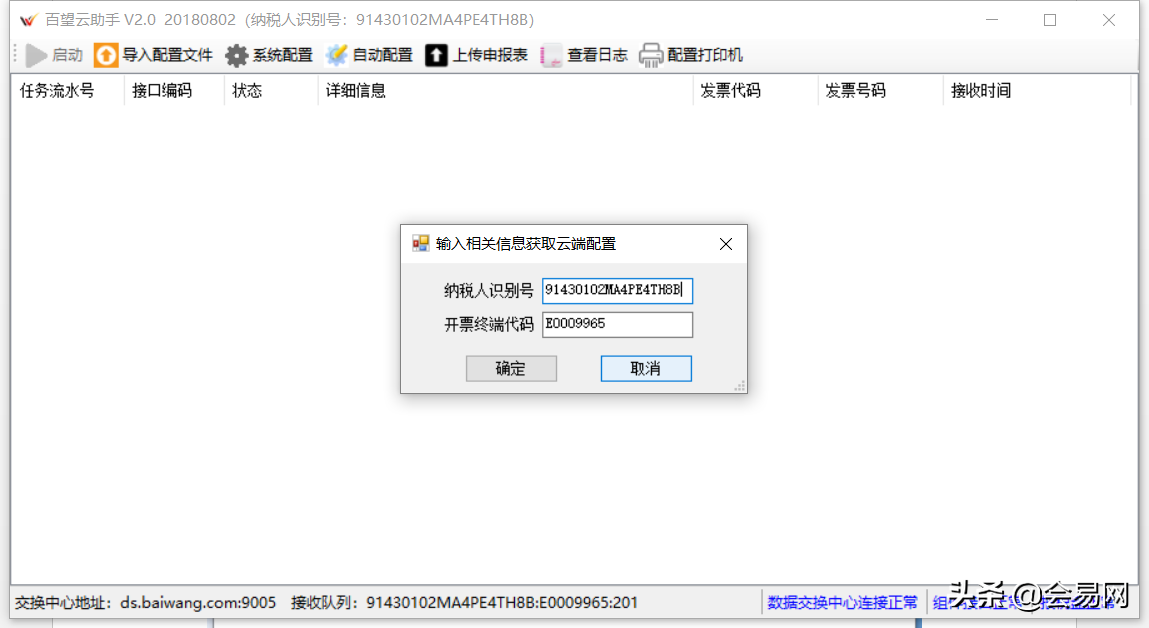 2、输入完税号和开票终端代码后,点击“确定”。如下图所示: