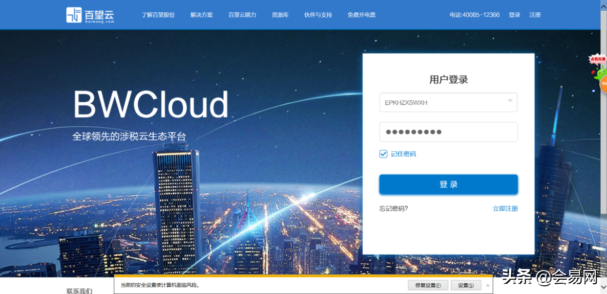 1、登录百望云网站,点击“立即注册”,准确输入注册信息,再使用用户名和密码登录,如下图所示: